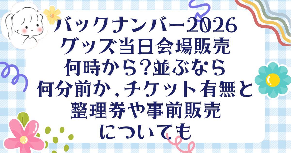 back numberのスタジアムツアー「Grateful Yesterdays Tour 2026」について、グッズの当日会場販売が何時から始まるのか、どれくらい前から並べばよいのか、チケットが必要かどうか、整理券や事前販売はあるのかを公式情報から調べました。