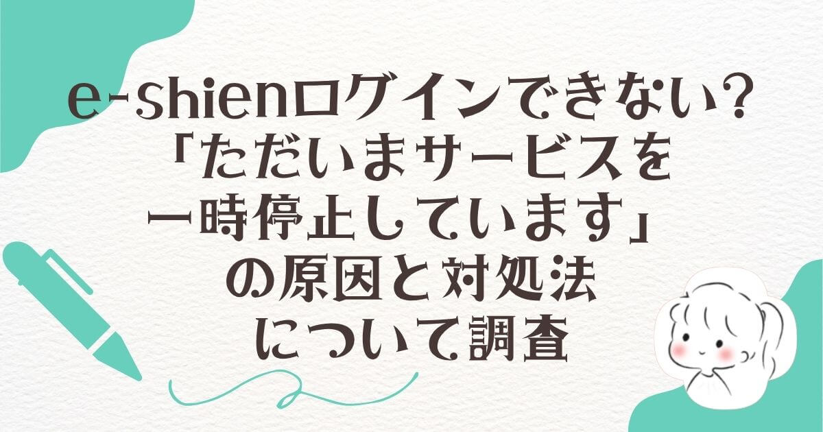 最近ネットで「e‑shien ログインできない」「ただいまサービスを一時停止しています」の画面が出て困っているとよく見かけます。