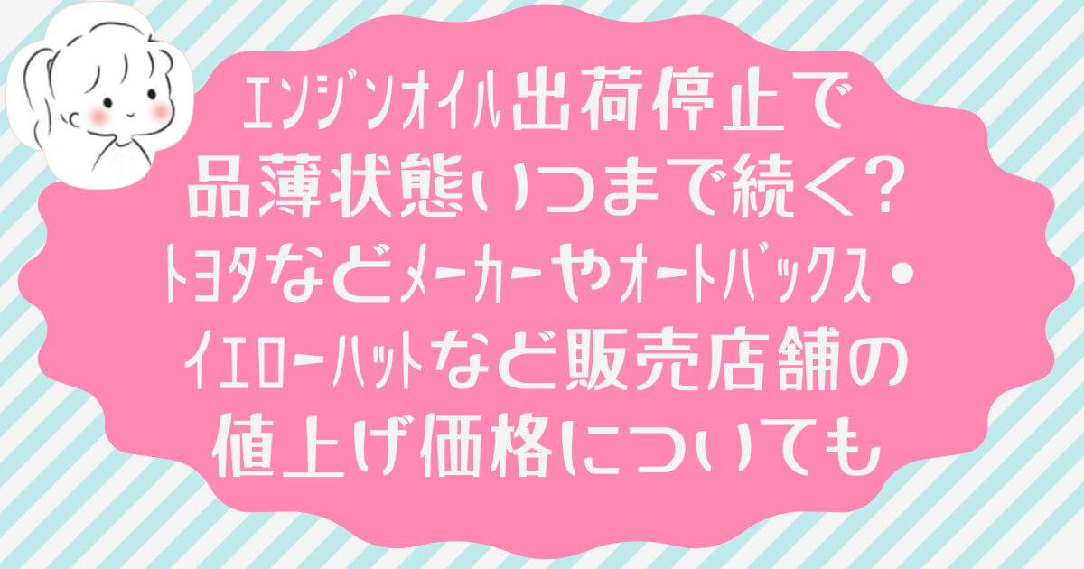 車を所有する皆さんは、エンジンオイルの交換時期が近づくと心配になりますよね。特に今、エンジンオイルの出荷停止による品薄状態が続いており、いつまでこの状況が続くのか、トヨタなどのメーカーやオートバックス・イエローハットなどの店舗で値上げがどれくらいなのか気になっている方が多いはずです。