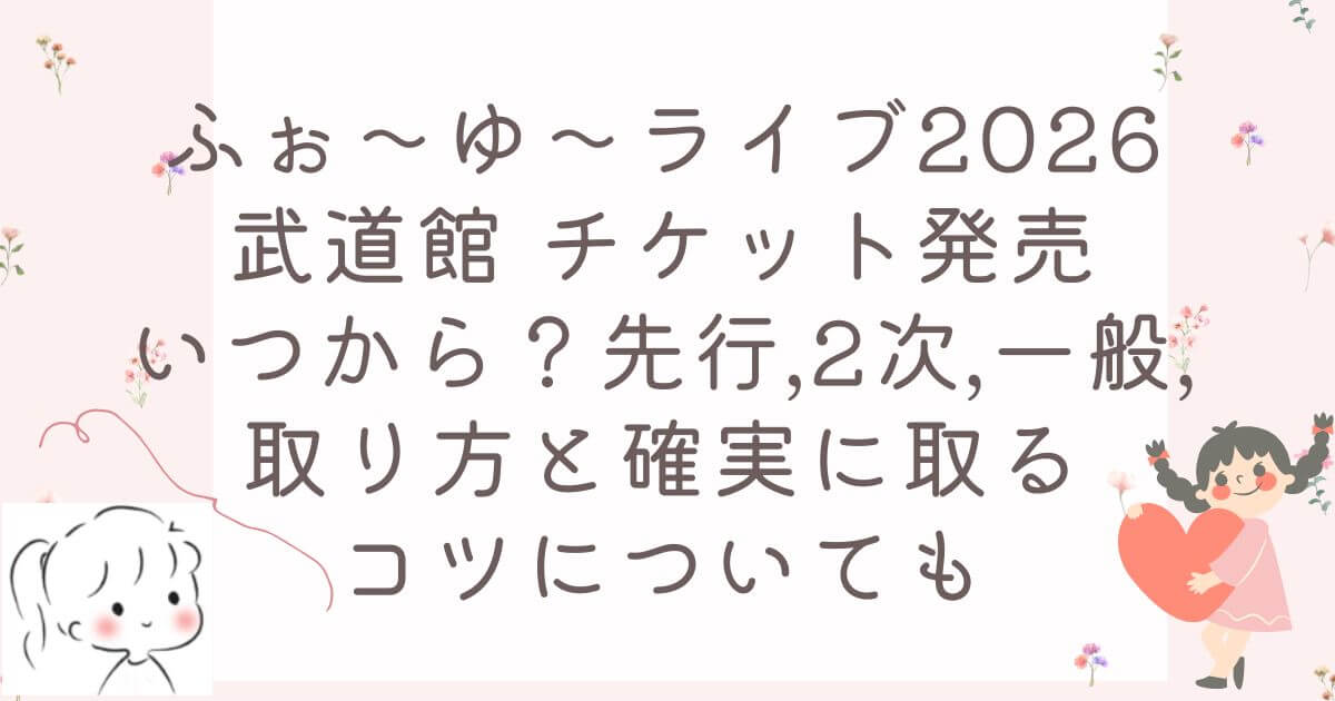 ふぉ~ゆ~のファンなら、結成15周年を記念した日本武道館公演「ふぉ~ゆ~ 一夜限りの15周年LIVE I♡YoU ~3939です~」のチケット情報を今すぐ知りたいはずです。 このライブは2026年8月13日(木)に開催され、初の武道館ワンマンとして話題沸騰中。 先行販売から一般発売までいつからか、取り方の手順や確実に取るコツまで、過去のライブ実績を基に詳しくまとめました。 忙しい毎日の中でもサクッとチェックできるように、わかりやすい表とリストで解説。公式発表が出ていない部分は過去パターンから予想し、当落後のリセール対策もオリジナルでアドバイスします。この記事を読めば、抽選申し込みから本番まで不安なく進められます。