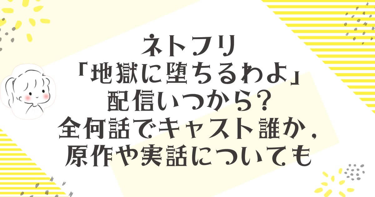 Netflixの新作ドラマ「地獄に堕ちるわよ」が気になって、配信日や話数、キャスト、そして原作や実話との関係まで調べました。タイトルのインパクトが強くて、つい「どんな作品なの?」と気になりますよね。この記事では、ネタバレなしで、正式な情報源を中心にわかりやすくまとめます。