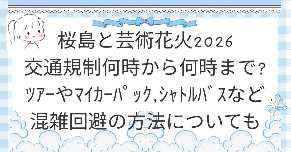 この記事は、桜島と芸術花火2026の会場周辺の交通規制の時間帯や、混雑を避けるための「マイカーパック」「シャトルバス」「ツアーバス」などのおすすめ移動方法を、わかりやすくまとめて紹介します。