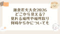 主催は鎌倉花火大会実行委員会で、天候不良時は中止の可能性があります。