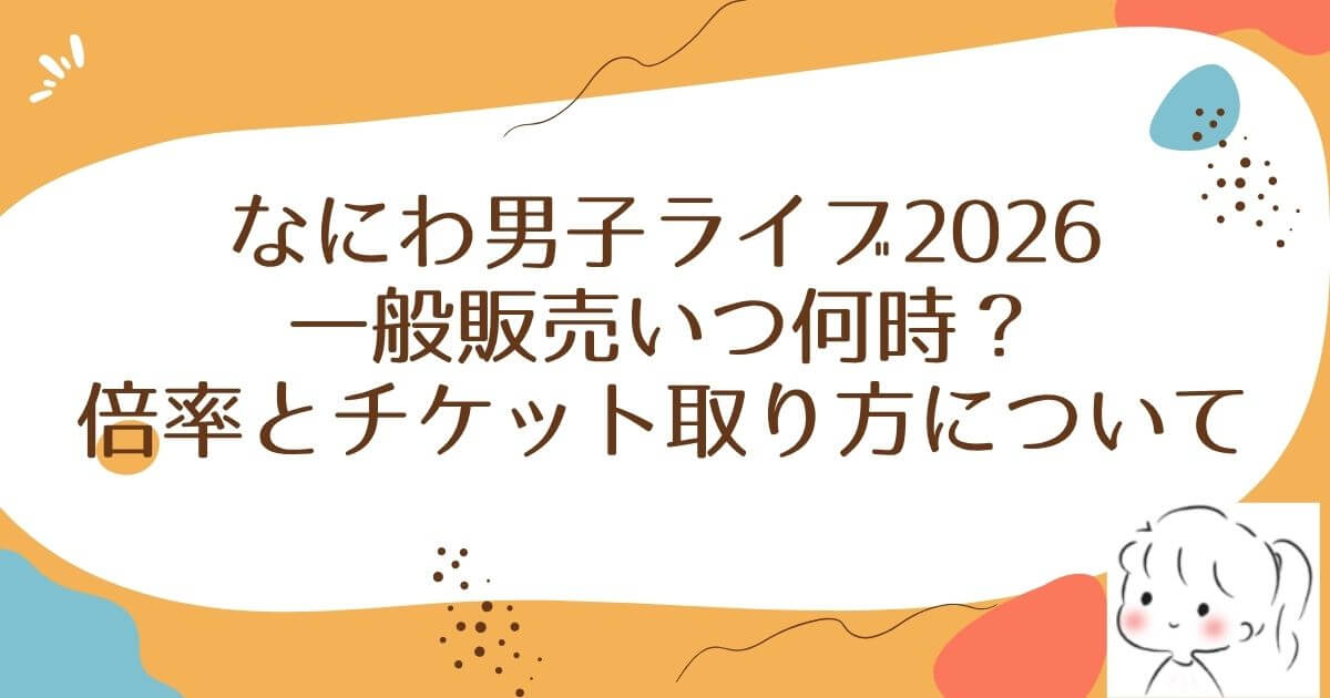 なにわ男子ライブ2026の一般販売は、公演1〜2週間前、土日12時頃が予想されます。倍率は20〜50倍と高く、準備が鍵です。