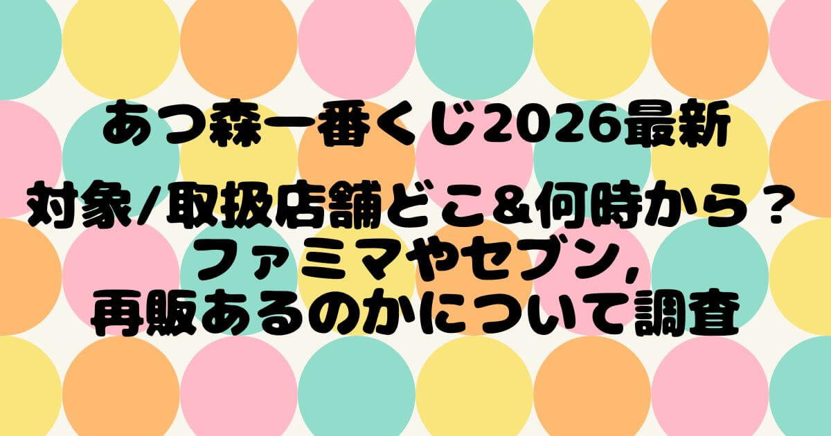 あつ森一番くじ2026最新 対象/取扱店舗どこ&何時から?ファミマやセブン,再販あるのかについて調査