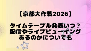 京都大作戦2026に行きたいけれど、「タイムテーブルはいつ出るの?」「配信やライブビューイングで見られる?」「現地に行けないけど楽しむ方法はある?」と気になっている方は多いと思います。この記事では、過去の京都大作戦の傾向や公式発表をもとに、...