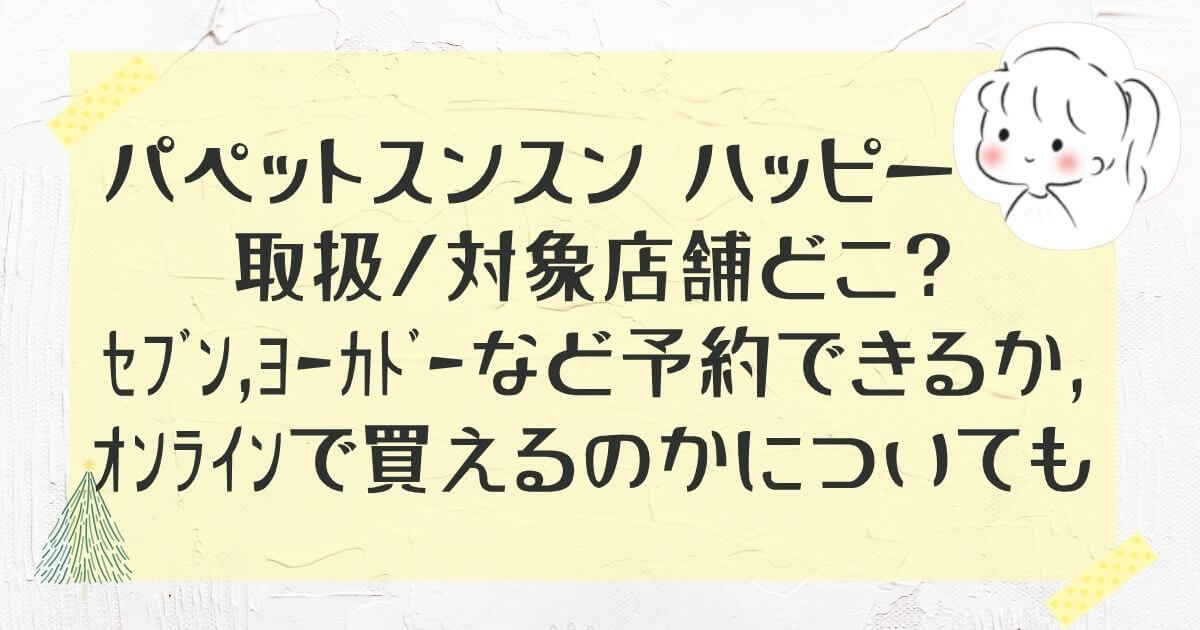 パペットスンスン ハッピーくじの取扱店舗や、セブン・ヨーカドーで予約できるのか、オンライン販売があるのかを調べました。発売予定は2026年5月29日で、セブン‐イレブン、イトーヨーカドー、ゆめタウンの店舗販売が案内されています。予約については公式案内が見当たらず、基本は店頭での購入が中心と考えるのが良さそうです。