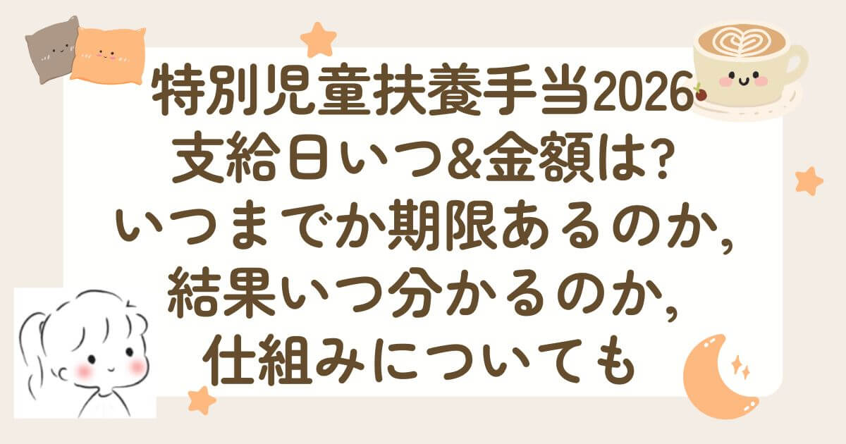 特別児童扶養手当を受け取っている方や申請を考えている方は、2026年の支給日や金額、申請期限、結果の通知時期が気になりますよね。手続きのタイミングを逃すと支援が受けられなくなる心配もあります。この記事では、2026年の支給日と金額の詳細、申請の期限や結果がいつわかるかを厚生労働省の基準に基づいてわかりやすく説明します。また、手当の仕組みや必要書類、よくある疑問も網羅。毎年変わらないルールが多いので、過去の事例を参考に安心して手続きを進められるようまとめました。すぐに確認して、必要な方は市区町村の窓口へお早めにどうぞ。